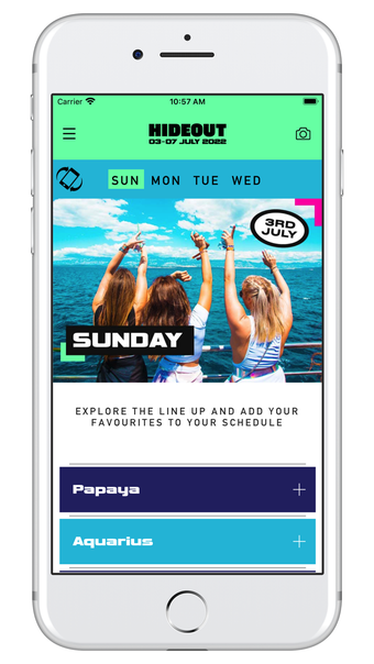 Hideout Festival 2022 to coroczny festiwal muzyki elektronicznej odbywający się w Chorwacji. Festiwal łączy w sobie plażowe klimaty, imprezy na łodziach, przy basenie oraz ekskluzywne koncerty główne na 5 otwartych przestrzeniach na plaży Zrce. Oficjalna aplikacja wydarzenia, opracowana przez Clarifi Media Limited, jest dostępna do pobrania na iPhone'a. Zapewnia ona aktualizacje na żywo dotyczące festiwalu, dostęp do najnowszej wersji harmonogramu oraz zmian w planach podczas festiwalu.